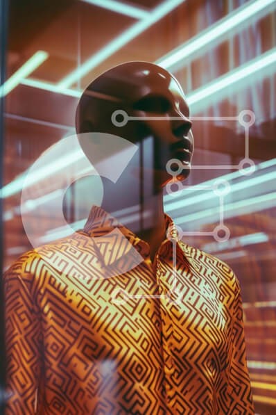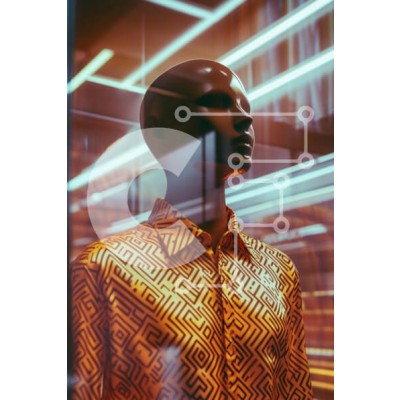Υπάρχει δυνατότητα προσωποποίησης με δική σας φωτογραφία και προσαρμογής διαστάσεων κατόπιν παραγγελίας. Το συγεκεριμενο puzzle παρουσιαζει Η εικόνα απεικονίζει ένα μανεκέν με ένα κομψό, λαμπερό κεφάλι ντυμένο με ένα εντυπωσιακό πορτοκαλί πουκάμισο διακοσμημένο με γεωμετρικό μαύρο σχέδιο. Το μανεκέν είναι τοποθετημένο μπροστά σε ένα φόντο από φωτεινά φώτα νέον που δημιουργούν μια μοντέρνα και κομψή ατμόσφαιρα. Η σ