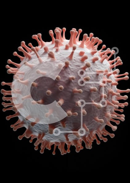 Υπάρχει δυνατότητα προσωποποίησης με δική σας φωτογραφία και προσαρμογής διαστάσεων κατόπιν παραγγελίας. Το συγεκεριμενο puzzle παρουσιαζει Αυτή η εικόνα απεικονίζει ένα λεπτομερές τρισδιάστατο μοντέλο ενός ιού, που δείχνει το σφαιρικό του σχήμα και τις πολυάριθμες προβολές που μοιάζουν με ακίδα. Ο ιός αποδίδεται σε αποχρώσεις του λευκού και του ροζ, με ανάγλυφη επιφάνεια που προσθέτει βάθος και ρεαλισμό. Το φόντο