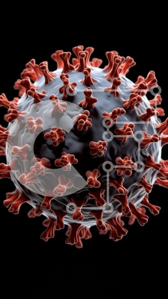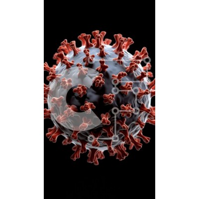 Υπάρχει δυνατότητα προσωποποίησης με δική σας φωτογραφία και προσαρμογής διαστάσεων κατόπιν παραγγελίας. Το συγεκεριμενο puzzle παρουσιαζει Αυτή η εικόνα απεικονίζει μια λεπτομερή κοντινή όψη ενός ιού, με μια σφαιρική δομή που καλύπτεται από προσαρτήματα που μοιάζουν με ακίδα. Ο ιός είναι κυρίως σκούρο γκρι, με κόκκινες αιχμές να προεξέχουν από την επιφάνειά του. Το φόντο είναι μαύρο, γεγονός που ενισχύει την ορατ
