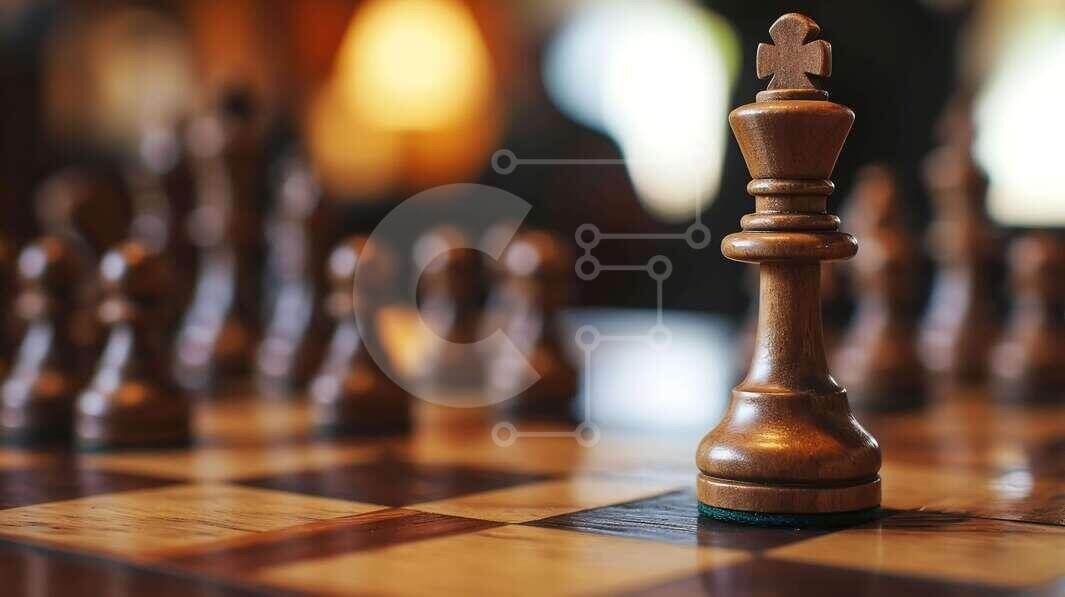 Υπάρχει δυνατότητα προσωποποίησης με δική σας φωτογραφία και προσαρμογής διαστάσεων κατόπιν παραγγελίας. Το συγεκεριμενο puzzle παρουσιαζει Η εικόνα δείχνει μια κοντινή άποψη μιας ξύλινης σκακιέρας με ένα προεξέχον ξύλινο κομμάτι βασιλιά στο επίκεντρο. Το φόντο διαθέτει πολλά θολά κομμάτια πιονιού, δημιουργώντας ένα εφέ βάθους πεδίου που τραβά την προσοχή στον βασιλιά. Τα περίπλοκα ξύλινα σχέδια της σκακιέρας προσ