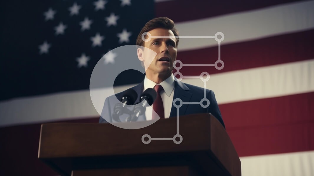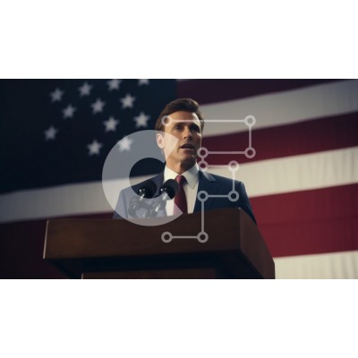 Υπάρχει δυνατότητα προσωποποίησης με δική σας φωτογραφία και προσαρμογής διαστάσεων κατόπιν παραγγελίας. Το συγεκεριμενο puzzle παρουσιαζει Αυτή η εικόνα παρουσιάζει έναν άνδρα να εκφωνεί μια ομιλία σε ένα βήμα μπροστά από μια αμερικανική σημαία, συμβολίζοντας τον πατριωτισμό και την ηγεσία. Ο άνδρας είναι ντυμένος με επίσημο κοστούμι και εμφανίζεται δεσμευμένος και γεμάτος αυτοπεποίθηση καθώς απευθύνεται στο κοιν