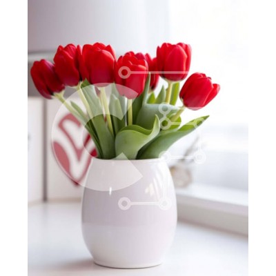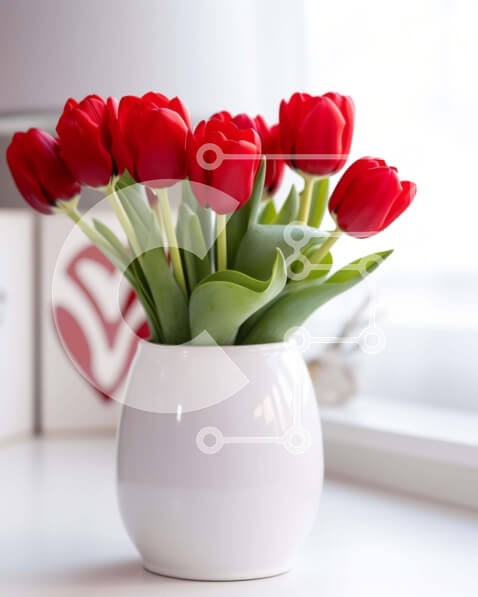 Υπάρχει δυνατότητα προσωποποίησης με δική σας φωτογραφία και προσαρμογής διαστάσεων κατόπιν παραγγελίας. Το συγεκεριμενο puzzle παρουσιαζει Αυτή η εικόνα παρουσιάζει ένα μπουκέτο από ζωντανές κόκκινες τουλίπες σε ένα κομψό λευκό βάζο. Οι τουλίπες στέκονται ψηλές και γεμάτες, με τα λεία πέταλά τους να πιάνουν το φως, δημιουργώντας μια εντυπωσιακή αντίθεση στο πράσινο των φύλλων. Το φόντο είναι απαλά θολό, επιτρέπον