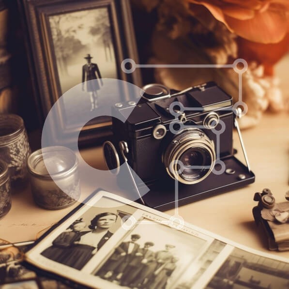 Υπάρχει δυνατότητα προσωποποίησης με δική σας φωτογραφία και προσαρμογής διαστάσεων κατόπιν παραγγελίας. Το συγεκεριμενο puzzle παρουσιαζει Η εικόνα παρουσιάζει μια παλιομοδίτικη φωτογραφική μηχανή, φωτογραφίες με κορνίζα και κεριά σε ένα ξύλινο τραπέζι. Η κάμερα είναι πιθανώς από τη δεκαετία του 1940 ή του 1950, ενώ οι φωτογραφίες τραβήχτηκαν στις αρχές του 20ου αιώνα. Μερικές από τις φωτογραφίες φαίνεται ότι τρα