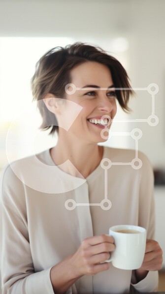 | Όνομα Προϊόντος | Intra Συλλεκτικό Ξύλινο Παζλ Plywood 4mm - Χαμογελαστή γυναίκα που κρατά ένα φλιτζάνι σε ένα φωτεινό εσωτερικό περιβάλλον Σε Ξύλινο Κουτί - Διαστάσεις Puzzle: 10x10 cm – 25 κομμάτια |