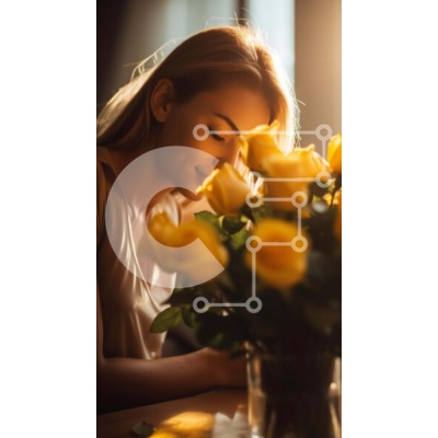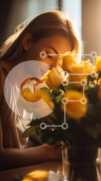 Υπάρχει δυνατότητα προσωποποίησης με δική σας φωτογραφία και προσαρμογής διαστάσεων κατόπιν παραγγελίας. Το συγεκεριμενο puzzle παρουσιαζει Η εικόνα δείχνει μια γυναίκα να απολαμβάνει το άρωμα των κίτρινων τριαντάφυλλων στο τραπέζι της. Τα λουλούδια τοποθετούνται στην κορυφή του κεφαλιού της, προσθέτοντας μια ιδιότροπη πινελιά στη σκηνή. Ένα μοναδικό puzzle που συνδυάζει ποιότητα, αισθητική και εμπειρία. Υλικό: