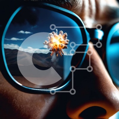 Υπάρχει δυνατότητα προσωποποίησης με δική σας φωτογραφία και προσαρμογής διαστάσεων κατόπιν παραγγελίας. Το συγεκεριμενο puzzle παρουσιαζει Αυτή η εικόνα παρουσιάζει έναν άνδρα που φοράει γυαλιά ηλίου με μια έκρηξη να αντανακλάται σε αυτά. Τα βουνά στο βάθος υποδηλώνουν ότι το άτομο θα μπορούσε να βρίσκεται σε μια ορεινή περιοχή. Η γύρω περιοχή περιλαμβάνει επίσης μια οροσειρά ή λοφώδες έδαφος. Η έκρηξη στην ανταν