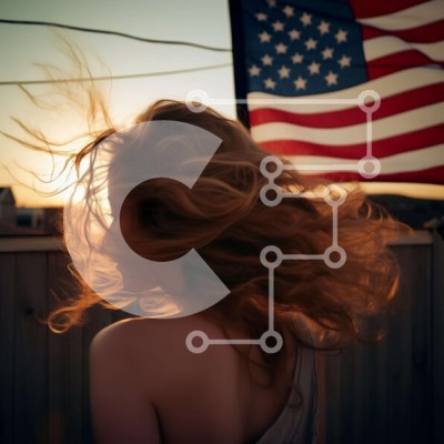 Υπάρχει δυνατότητα προσωποποίησης με δική σας φωτογραφία και προσαρμογής διαστάσεων κατόπιν παραγγελίας. Το συγεκεριμενο puzzle παρουσιαζει Η εικόνα απεικονίζει μια γυναίκα με τα μαλλιά της να φυσούν στον άνεμο καθώς στέκεται δίπλα σε μια αμερικανική σημαία, η οποία φαίνεται από πολλές γωνίες. Τα μαλλιά της γυναίκας κυλούν ελεύθερα γύρω από το σώμα της, υποδηλώνοντας ότι απολαμβάνει το ηλιοβασίλεμα σε εξωτερικούς
