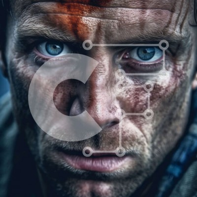 Υπάρχει δυνατότητα προσωποποίησης με δική σας φωτογραφία και προσαρμογής διαστάσεων κατόπιν παραγγελίας. Το συγεκεριμενο puzzle παρουσιαζει Αυτή η εικόνα παρουσιάζει ένα πορτρέτο ενός τραχύ άνδρα με πυκνή γενειάδα, μακριά μαλλιά και διαπεραστικά μπλε μάτια. Έχει κοψίματα και γρατζουνιές στο πρόσωπό του και φοράει ένα κουρελιασμένο, αιματοβαμμένο πουκάμισο και παντελόνι. Το φόντο δείχνει έναν σκοτεινό, θυελλώδη ουρ