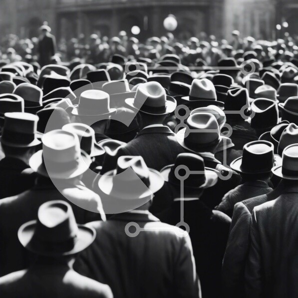 Υπάρχει δυνατότητα προσωποποίησης με δική σας φωτογραφία και προσαρμογής διαστάσεων κατόπιν παραγγελίας. Το συγεκεριμενο puzzle παρουσιαζει Η εικόνα παρουσιάζει μια μεγάλη ομάδα ανδρών που φορούν καπέλα και στέκονται σε ένα αστικό περιβάλλον. Πολλοί από τους άνδρες φαίνεται να είναι ντυμένοι με επαγγελματικά ρούχα, συμπεριλαμβανομένων κοστουμιών και blazers. Υπάρχουν επίσης αρκετές γυναίκες στην εικόνα, κάτι που υ