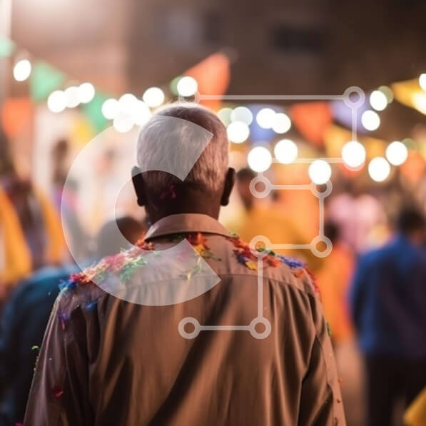 Υπάρχει δυνατότητα προσωποποίησης με δική σας φωτογραφία και προσαρμογής διαστάσεων κατόπιν παραγγελίας. Το συγεκεριμενο puzzle παρουσιαζει Αυτή η εικόνα δείχνει έναν ηλικιωμένο άνδρα που φορά ένα πολύχρωμο πουκάμισο να στέκεται σε έναν γεμάτο δρόμο με πολύχρωμες διακοσμήσεις να κρέμονται από ψηλά. Στο βάθος διακρίνονται άνθρωποι διαφορετικών ηλικιών και εθνοτήτων να περπατούν. Ένα μοναδικό puzzle που συνδυάζει π