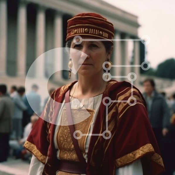 Υπάρχει δυνατότητα προσωποποίησης με δική σας φωτογραφία και προσαρμογής διαστάσεων κατόπιν παραγγελίας. Το συγεκεριμενο puzzle παρουσιαζει Αυτή η εικόνα παρουσιάζει μια γυναίκα ντυμένη με παραδοσιακά ρούχα να στέκεται μπροστά από ένα κτίριο με κολώνες. Η γυναίκα είναι το κύριο επίκεντρο της εικόνας και στέκεται ψηλή και περήφανη. Οι κολώνες του κτιρίου στο βάθος προσθέτουν στο μεγαλείο της σκηνής. Ένα μοναδικό p