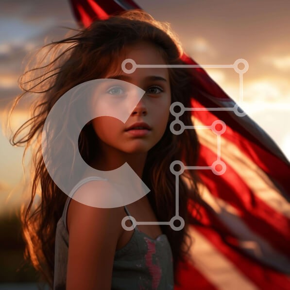 Υπάρχει δυνατότητα προσωποποίησης με δική σας φωτογραφία και προσαρμογής διαστάσεων κατόπιν παραγγελίας. Το συγεκεριμενο puzzle παρουσιαζει Η εικόνα δείχνει ένα νεαρό κορίτσι να στέκεται μπροστά από μια αμερικανική σημαία. Έχει μακριά, γεμάτα μαλλιά και φαίνεται να κρατά τη σημαία στα χέρια της. Το πρόσωπό της είναι ελαφρώς γερμένο προς την κάμερα, υποδηλώνοντας ότι κοιτάζει επίμονα κάτι ή κάποιον. Ένα μοναδικό p
