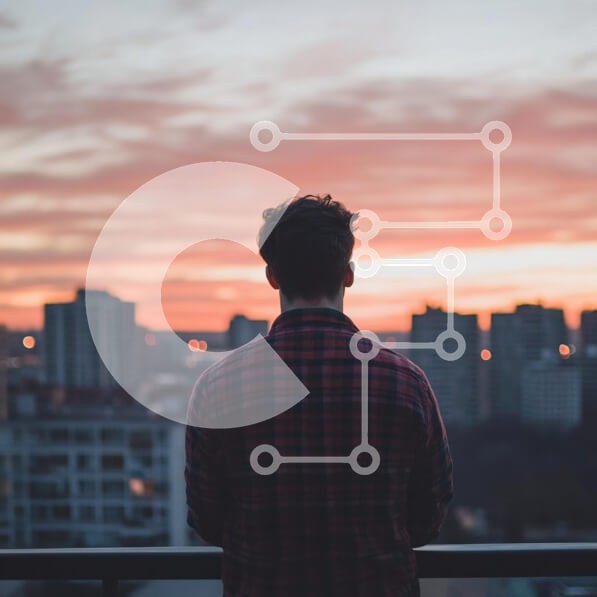 Υπάρχει δυνατότητα προσωποποίησης με δική σας φωτογραφία και προσαρμογής διαστάσεων κατόπιν παραγγελίας. Το συγεκεριμενο puzzle παρουσιαζει Ένα άτομο στέκεται σε ένα μπαλκόνι με θέα στον ορίζοντα της πόλης στο ηλιοβασίλεμα. Ο ουρανός είναι βαμμένος σε πορτοκαλί, ροζ και μοβ αποχρώσεις καθώς ο ήλιος δύει πίσω από τα κτίρια. Το άτομο φαίνεται από την πλάτη, φορώντας ένα καρό πουκάμισο, που συμβολίζει τον στοχασμό κα