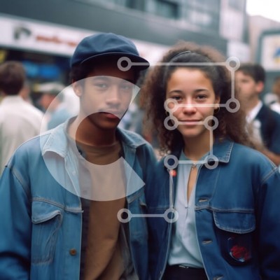 Υπάρχει δυνατότητα προσωποποίησης με δική σας φωτογραφία και προσαρμογής διαστάσεων κατόπιν παραγγελίας. Το συγεκεριμενο puzzle παρουσιαζει Αυτή η εικόνα παρουσιάζει έναν άνδρα και μια γυναίκα να στέκονται σε έναν δρόμο της πόλης. Και οι δύο χαμογελούν και κοιτάζουν την κάμερα. Ο άνδρας φοράει μπλε τζιν μπουφάν και μαύρο καπάκι, ενώ η γυναίκα μαύρο δερμάτινο μπουφάν και λευκό μπλουζάκι. Αποτελούν ένα χαρούμενο και