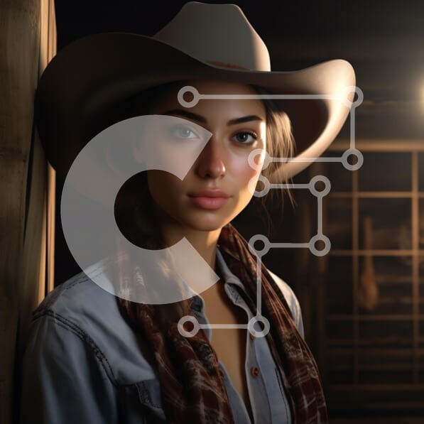 Υπάρχει δυνατότητα προσωποποίησης με δική σας φωτογραφία και προσαρμογής διαστάσεων κατόπιν παραγγελίας. Το συγεκεριμενο puzzle παρουσιαζει Αυτή η εικόνα παρουσιάζει μια νεαρή γυναίκα με μακριά, πλεγμένα μαλλιά που φορά ένα καουμπόικο καπέλο και ένα τζιν πουκάμισο. Στέκεται πάνω σε έναν ξύλινο τοίχο, δημιουργώντας μια ρουστίκ ατμόσφαιρα. Ο φωτισμός είναι απαλός, αναδεικνύοντας τα χαρακτηριστικά του προσώπου της κα