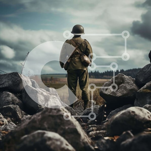 Υπάρχει δυνατότητα προσωποποίησης με δική σας φωτογραφία και προσαρμογής διαστάσεων κατόπιν παραγγελίας. Το συγεκεριμενο puzzle παρουσιαζει Αυτή η εικόνα απεικονίζει έναν στρατιώτη να στέκεται ανάμεσα σε μεγάλους βράχους, κοιτάζοντας την απόσταση μια συννεφιασμένη μέρα. Ο στρατιώτης, ντυμένος με στρατιωτική ενδυμασία και κράνος, εμφανίζεται στοχαστικός καθώς ατενίζει ένα χωράφι που απλώνεται στον ορίζοντα. Ο ουραν