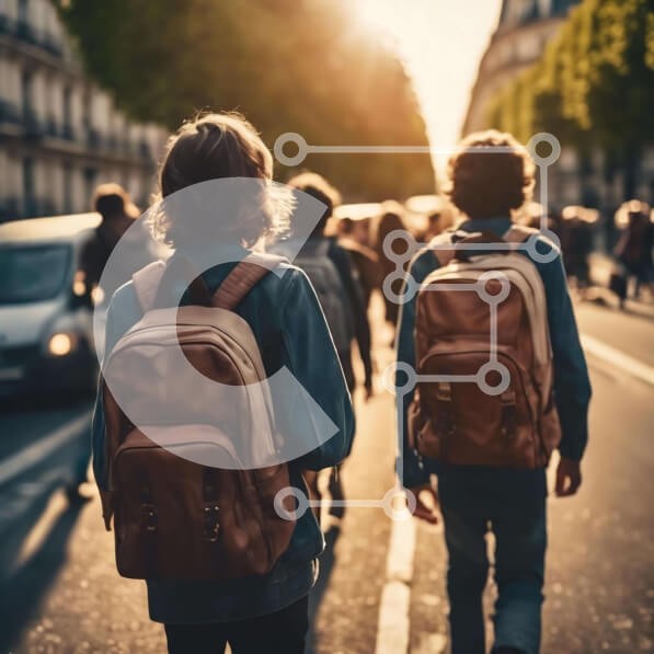 Υπάρχει δυνατότητα προσωποποίησης με δική σας φωτογραφία και προσαρμογής διαστάσεων κατόπιν παραγγελίας. Το συγεκεριμενο puzzle παρουσιαζει Η εικόνα δείχνει δύο άτομα να περπατούν σε έναν δρόμο με σακίδια, πιθανώς στο δρόμο τους για το σχολείο ή τη δουλειά. Υπάρχουν πολλά αυτοκίνητα στο φόντο της εικόνας, υποδηλώνοντας ότι μπορεί να είναι μέρος μιας αστικής κίνησης. Επιπλέον, φαίνεται να υπάρχει κάποιο είδος δραστ
