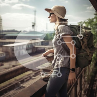 Υπάρχει δυνατότητα προσωποποίησης με δική σας φωτογραφία και προσαρμογής διαστάσεων κατόπιν παραγγελίας. Το συγεκεριμενο puzzle παρουσιαζει Αυτή η φωτογραφία είναι μιας κομψά ντυμένης γυναίκας που στέκεται σε μια γέφυρα και κοιτάζει το αστικό τοπίο από κάτω. Φοράει γυαλιά ηλίου, καπέλο και έχει τα χέρια στις τσέπες. Κουβαλάει ένα μεγάλο πράσινο σακίδιο. Η εικόνα αποτυπώνει μια μοναδική προοπτική της πόλης και η γυ
