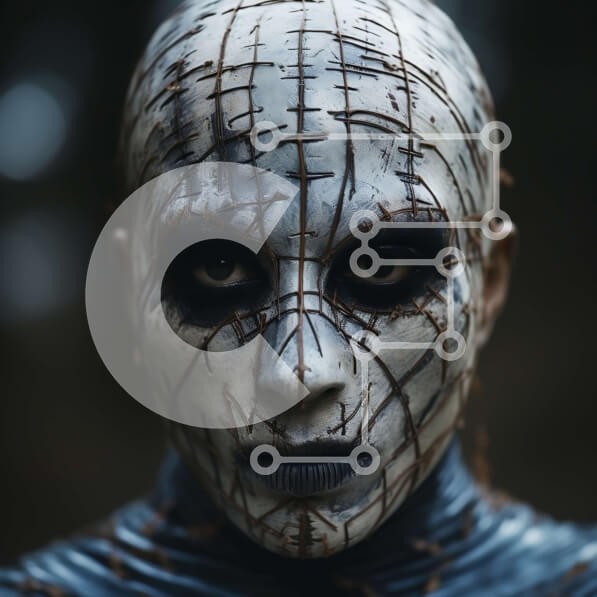 Υπάρχει δυνατότητα προσωποποίησης με δική σας φωτογραφία και προσαρμογής διαστάσεων κατόπιν παραγγελίας. Το συγεκεριμενο puzzle παρουσιαζει Αυτή η εικόνα απεικονίζει ένα άτομο που φοράει λευκή μάσκα με περίπλοκα σχέδια μαύρης και κόκκινης μπογιάς στο πρόσωπό του. Έχουν μαύρα μαλλιά και είναι ντυμένοι με ασπρόμαυρη στολή. Το άτομο στέκεται μπροστά σε ένα σκούρο φόντο, με δέντρα ορατά στο βάθος. Ένα μοναδικό puzzle