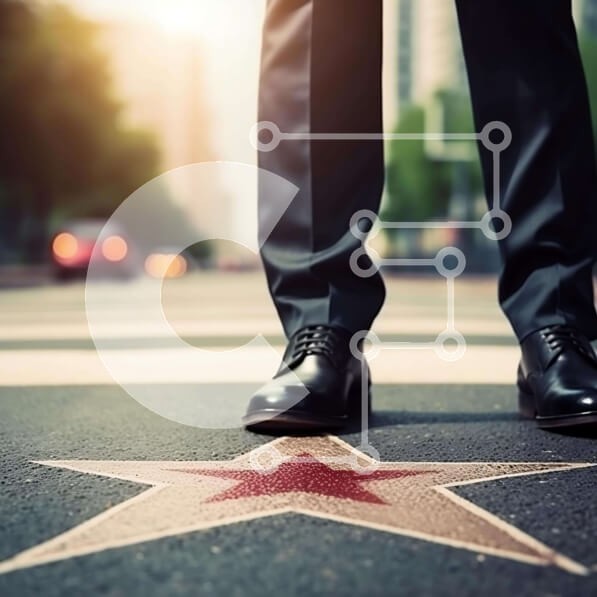 Υπάρχει δυνατότητα προσωποποίησης με δική σας φωτογραφία και προσαρμογής διαστάσεων κατόπιν παραγγελίας. Το συγεκεριμενο puzzle παρουσιαζει Η εικόνα δείχνει ένα άτομο ντυμένο με επαγγελματικά ρούχα να στέκεται σε μια πινακίδα σε σχήμα αστεριού μπροστά από αυτοκίνητα και άλλα οχήματα. Η στολή του ατόμου υποδηλώνει μια πιθανή σχέση με τη βιομηχανία του θεάματος ή τον κόσμο των διασημοτήτων, ενώ τα παπούτσια υποδηλών