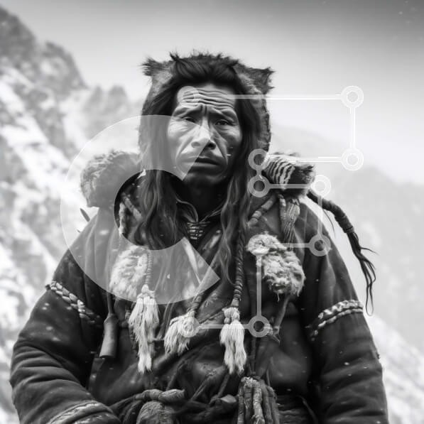 Υπάρχει δυνατότητα προσωποποίησης με δική σας φωτογραφία και προσαρμογής διαστάσεων κατόπιν παραγγελίας. Το συγεκεριμενο puzzle παρουσιαζει Αυτή η στοκ φωτογραφία δείχνει έναν άνδρα με παραδοσιακή ενδυμασία να στέκεται μπροστά από μια συναρπαστική οροσειρά. Φοράει ένα γούνινο σακάκι και ένα καπέλο με φαρδύ γείσο και κουβαλάει ένα ραβδί και μια τσάντα στον ώμο του. Ο ουρανός είναι συννεφιασμένος και υπάρχει χιόνι σ