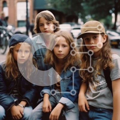 Υπάρχει δυνατότητα προσωποποίησης με δική σας φωτογραφία και προσαρμογής διαστάσεων κατόπιν παραγγελίας. Το συγεκεριμενο puzzle παρουσιαζει Αυτή η εικόνα απεικονίζει τέσσερα παιδιά να κάθονται σε ένα παγκάκι σε έναν δρόμο της πόλης. Όλοι τους φορούν τζιν μπουφάν και καπέλα και δείχνουν να απολαμβάνουν ο ένας την παρέα του άλλου. Το φόντο είναι ένας τυπικός δρόμος της πόλης με κτίρια και αυτοκίνητα σε απόσταση. Έν