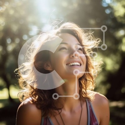 Υπάρχει δυνατότητα προσωποποίησης με δική σας φωτογραφία και προσαρμογής διαστάσεων κατόπιν παραγγελίας. Το συγεκεριμενο puzzle παρουσιαζει Αυτή η εικόνα παρουσιάζει μια νεαρή γυναίκα που στέκεται σε ένα πάρκο, κοιτάζοντας τον ήλιο με ένα όμορφο χαμόγελο στο πρόσωπό της. Φοράει φανελάκι και βραχιόλια, ενώ τα μαλλιά της είναι χτενισμένα σε χαλαρούς κυματισμούς. Τα δέντρα πίσω της είναι γεμάτα και πράσινα, και ο ουρ