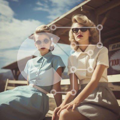 Υπάρχει δυνατότητα προσωποποίησης με δική σας φωτογραφία και προσαρμογής διαστάσεων κατόπιν παραγγελίας. Το συγεκεριμενο puzzle παρουσιαζει Δύο γυναίκες που φορούν γυαλιά ηλίου και κάθονται σε ένα παγκάκι μπροστά από ένα παλιομοδίτικο βενζινάδικο, ποζάρουν στον φωτογραφικό φακό. Αρκετές πινακίδες είναι τοποθετημένες γύρω από την περιοχή, που υποδηλώνουν ένα εξωτερικό περιβάλλον. Ένα μοναδικό puzzle που συνδυάζει