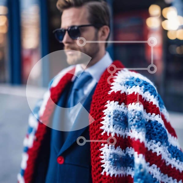 Υπάρχει δυνατότητα προσωποποίησης με δική σας φωτογραφία και προσαρμογής διαστάσεων κατόπιν παραγγελίας. Το συγεκεριμενο puzzle παρουσιαζει Ο άνδρας στην εικόνα φοράει μια κόκκινη, λευκή και μπλε ζακέτα με κροσέ. Στέκεται έξω με τα χέρια στους γοφούς του καθώς φοράει γυαλιά ηλίου για να προστατεύει τα μάτια του από τον ήλιο. Υπάρχουν αρκετές λεπτομέρειες που μπορούν να εντοπιστούν για την ενδυμασία του άνδρα, όπως