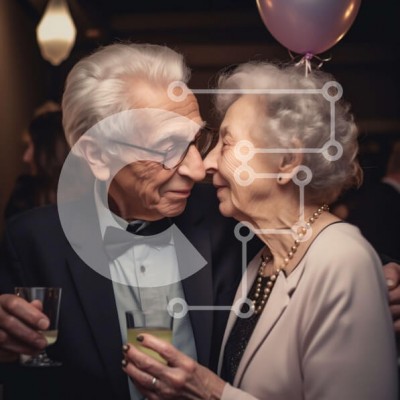 Υπάρχει δυνατότητα προσωποποίησης με δική σας φωτογραφία και προσαρμογής διαστάσεων κατόπιν παραγγελίας. Το συγεκεριμενο puzzle παρουσιαζει Αυτή η εικόνα παρουσιάζει ένα ηλικιωμένο ζευγάρι ντυμένο με επίσημη ενδυμασία, να χαμογελά και να φρυγανίζει με ποτήρια σαμπάνιας σε ένα πάρτι. Στέκονται μπροστά σε έναν τοίχο διακοσμημένο με μπαλόνια, δημιουργώντας ένα εορταστικό σκηνικό για την περίσταση. Ένα μοναδικό puzzl