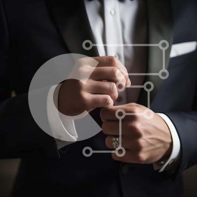 Υπάρχει δυνατότητα προσωποποίησης με δική σας φωτογραφία και προσαρμογής διαστάσεων κατόπιν παραγγελίας. Το συγεκεριμενο puzzle παρουσιαζει Ο άνδρας στην εικόνα φορά μαύρο σμόκιν και λευκό πουκάμισο. Προσαρμόζει τη βέρα του, η οποία φαίνεται ευδιάκριτα στο δεξί του χέρι. Υπάρχουν πολλά δαχτυλίδια ορατά στο αριστερό χέρι του άνδρα, υποδηλώνοντας ότι μπορεί να φοράει περισσότερες από μία μπάντες γάμου αυτή τη στιγμή