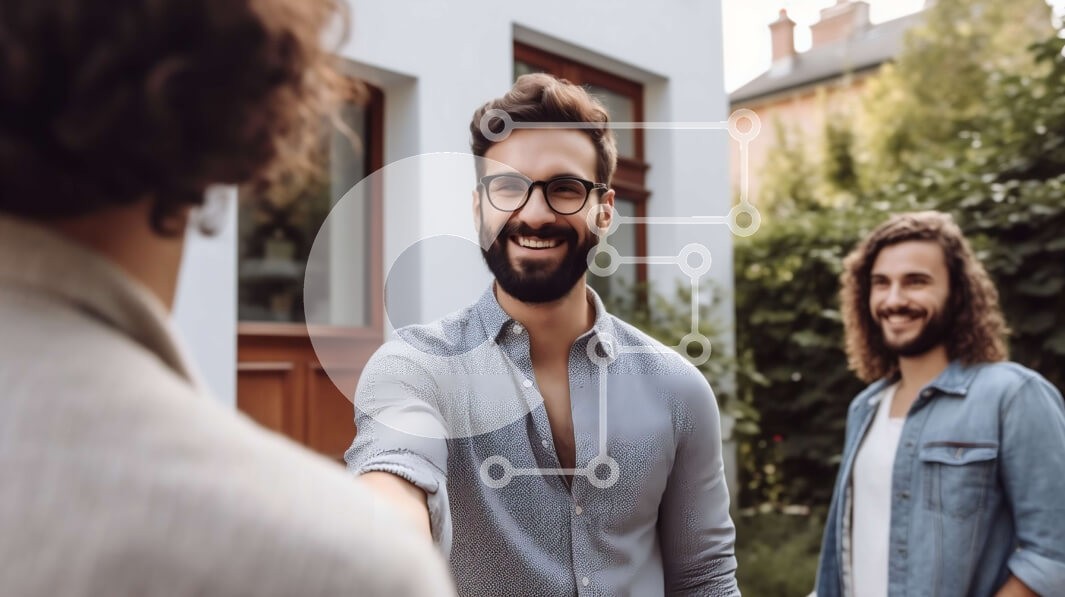 Υπάρχει δυνατότητα προσωποποίησης με δική σας φωτογραφία και προσαρμογής διαστάσεων κατόπιν παραγγελίας. Το συγεκεριμενο puzzle παρουσιαζει Αυτή η εικόνα δείχνει τρεις άνδρες να στέκονται έξω από ένα σπίτι, με δύο από αυτούς να κάνουν χειραψία. Οι άντρες είναι ντυμένοι με επαγγελματικά ρούχα, υποδηλώνοντας ότι μπορεί να κάνουν μια επιχειρηματική συμφωνία που σχετίζεται με το σπίτι. Το σπίτι φαίνεται να είναι ένα σ