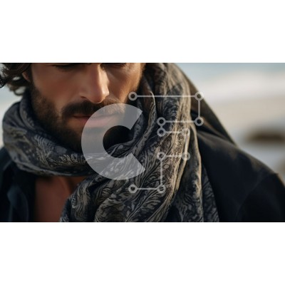 Υπάρχει δυνατότητα προσωποποίησης με δική σας φωτογραφία και προσαρμογής διαστάσεων κατόπιν παραγγελίας. Το συγεκεριμενο puzzle παρουσιαζει Αυτή η εικόνα απεικονίζει έναν άνδρα που φορά ένα μαύρο πουκάμισο και ένα μαύρο μαντήλι στο λαιμό του. Έχει μακριά, σγουρά μαλλιά και γένια. Ο άνδρας κοιτάζει μακριά σε μια παράκτια περιοχή, η οποία περιλαμβάνει ένα υδάτινο σώμα. Η σκηνή προκαλεί μια αίσθηση γαλήνης και γαλήνη