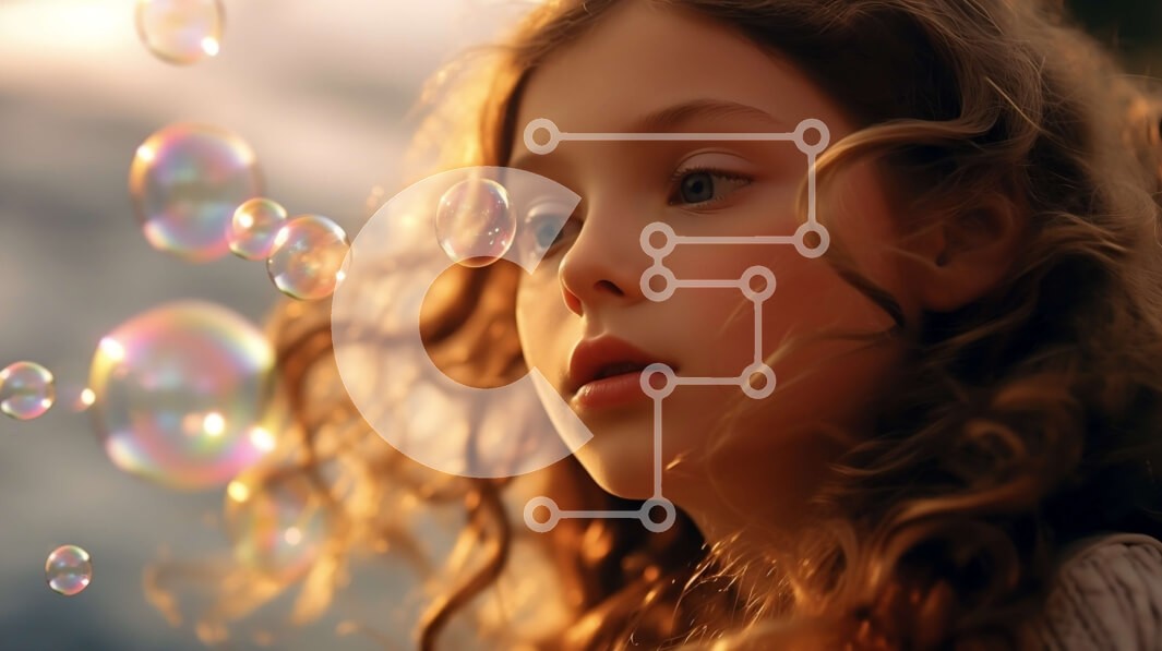 Υπάρχει δυνατότητα προσωποποίησης με δική σας φωτογραφία και προσαρμογής διαστάσεων κατόπιν παραγγελίας. Το συγεκεριμενο puzzle παρουσιαζει Αυτή η εικόνα παρουσιάζει ένα νεαρό κορίτσι με μακριά σγουρά μαλλιά και μεγάλα καστανά μάτια που κοιτάζει τον ουρανό με απορία και έκπληξη. Παρακολουθεί με προσήλωση καθώς σαπουνόφουσκες επιπλέουν στον αέρα. Το φόντο είναι θολό, προσθέτοντας στην ονειρική, μαγική αίσθηση της σ