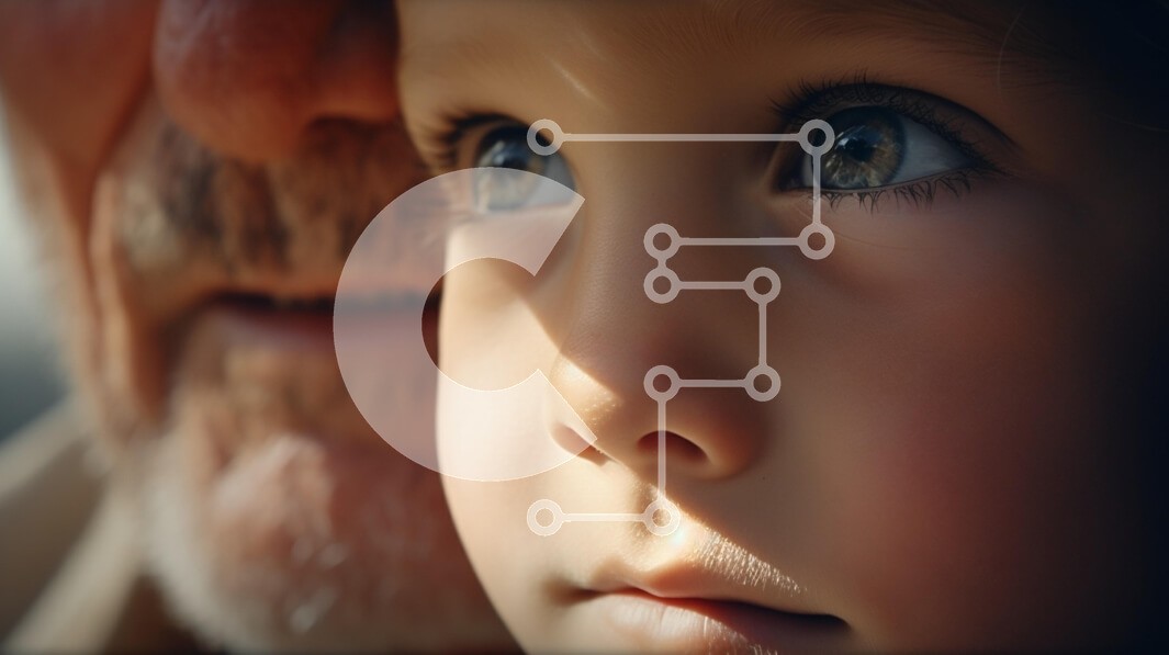 Υπάρχει δυνατότητα προσωποποίησης με δική σας φωτογραφία και προσαρμογής διαστάσεων κατόπιν παραγγελίας. Το συγεκεριμενο puzzle παρουσιαζει Αυτή η εικόνα παρουσιάζει ένα κοντινό πλάνο του προσώπου ενός παιδιού με εντυπωσιακά μπλε μάτια, που φωτίζονται από απαλό φως που δημιουργεί μια απαλή σκιά στο μάγουλό του. Στο βάθος, ένα μέρος του προσώπου ενός ηλικιωμένου ατόμου, πιθανότατα ενός παππού και της γιαγιάς, είναι