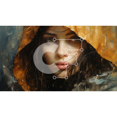 Υπάρχει δυνατότητα προσωποποίησης με δική σας φωτογραφία και προσαρμογής διαστάσεων κατόπιν παραγγελίας. Το συγεκεριμενο puzzle παρουσιαζει Αυτή η εικόνα παρουσιάζει μια γυναίκα που φοράει κουκούλα, με μακριά, σκούρα μαλλιά και καστανά μάτια. Έχει μια σοβαρή έκφραση στο πρόσωπό της και κοιτάζει κατευθείαν την κάμερα. Το φόντο είναι ένας σκοτεινός, συννεφιασμένος ουρανός με σταγόνες βροχής να πέφτουν από αυτόν. Έν