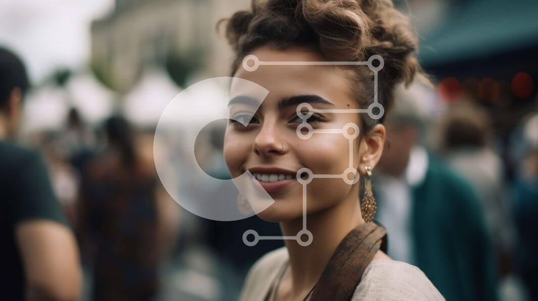 Υπάρχει δυνατότητα προσωποποίησης με δική σας φωτογραφία και προσαρμογής διαστάσεων κατόπιν παραγγελίας. Το συγεκεριμενο puzzle παρουσιαζει Αυτή η φωτογραφία απεικονίζει μια νεαρή γυναίκα με σγουρά μαλλιά και ένα πλατύ χαμόγελο να στέκεται στη μέση ενός πολυσύχναστου δρόμου. Φοράει λευκό πουκάμισο και μαύρο παντελόνι και το φόντο είναι γεμάτο με ανθρώπους που περπατούν και αυτοκίνητα που περνούν. Η ατμόσφαιρα είνα