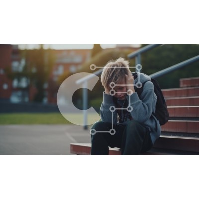 Υπάρχει δυνατότητα προσωποποίησης με δική σας φωτογραφία και προσαρμογής διαστάσεων κατόπιν παραγγελίας. Το συγεκεριμενο puzzle παρουσιαζει Η εικόνα απεικονίζει ένα νεαρό αγόρι να κάθεται μόνο του στα σκαλιά, εμφανώς ταλαιπωρημένο. Έχει τα χέρια του στο κεφάλι του, υποδηλώνοντας ότι είναι καταβεβλημένος ή έχει συναισθηματικό πόνο. Το αγόρι φοράει γκρι κουκούλα και σκούρο παντελόνι και φαίνεται να βρίσκεται σε ένα