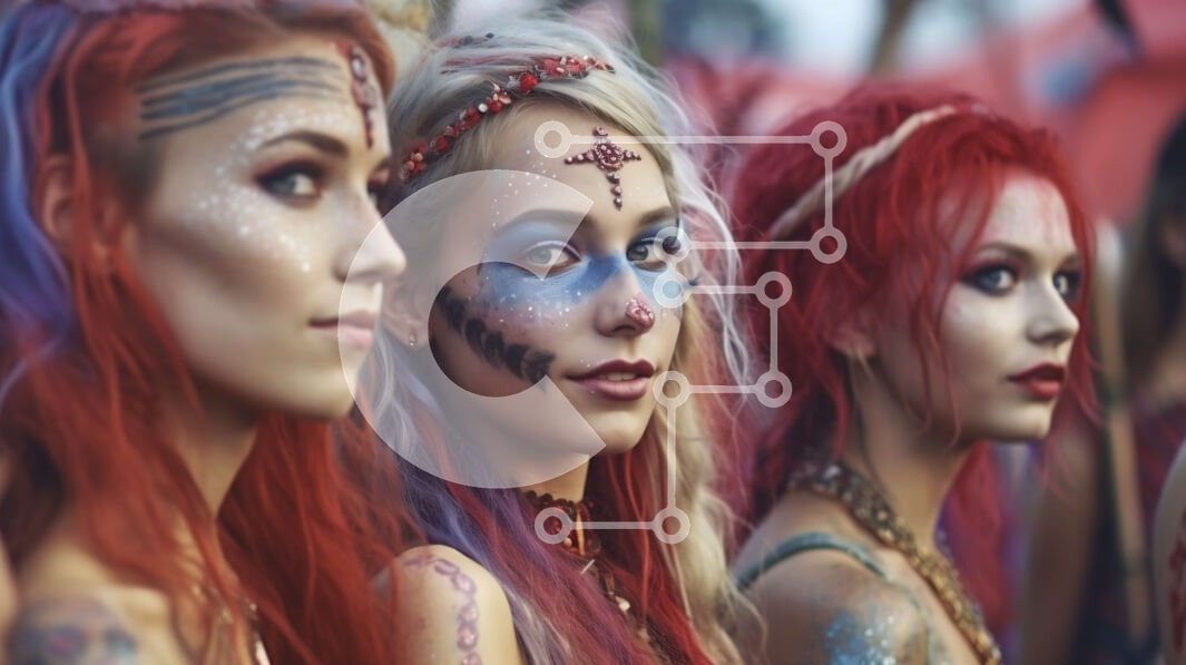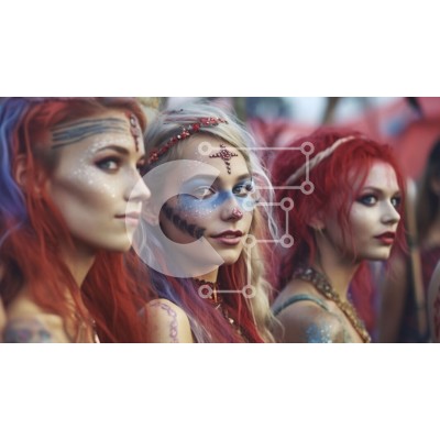 Υπάρχει δυνατότητα προσωποποίησης με δική σας φωτογραφία και προσαρμογής διαστάσεων κατόπιν παραγγελίας. Το συγεκεριμενο puzzle παρουσιαζει Αυτή είναι μια εικόνα μιας ομάδας γυναικών που στέκονται μαζί σε ένα μουσικό φεστιβάλ. Όλες φορούν πολύχρωμο μακιγιάζ και έχουν ζωηρά χρώματα μαλλιών. Η ατμόσφαιρα είναι ενεργητική και ζωντανή, με άλλους θεατές του φεστιβάλ να είναι ορατοί στο βάθος. Αυτή η εικόνα αποτυπώνει τ