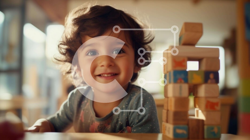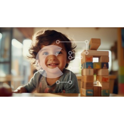 Υπάρχει δυνατότητα προσωποποίησης με δική σας φωτογραφία και προσαρμογής διαστάσεων κατόπιν παραγγελίας. Το συγεκεριμενο puzzle παρουσιαζει Η εικόνα απεικονίζει ένα μικρό παιδί να παίζει με ξύλινα τουβλάκια στο τραπέζι. Το παιδί χαμογελά καθώς αλληλεπιδρά με τα μπλοκ, τα οποία φαίνεται να είναι κατασκευασμένα από ξύλο ή πλαστικό. Υπάρχουν επίσης μερικά παιχνίδια στη σκηνή, όπως λούτρινα ζωάκια και βιβλία, που υποδ