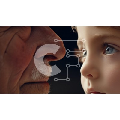 Υπάρχει δυνατότητα προσωποποίησης με δική σας φωτογραφία και προσαρμογής διαστάσεων κατόπιν παραγγελίας. Το συγεκεριμενο puzzle παρουσιαζει Η εικόνα απαθανατίζει μια κοντινή αλληλεπίδραση μεταξύ ενός ηλικιωμένου άνδρα και ενός παιδιού, με τα πρόσωπά τους κοντά μεταξύ τους καθώς κοιτάζουν ο ένας στα μάτια. Το πρόσωπο του ηλικιωμένου δείχνει σημάδια ηλικίας με ρυτίδες και λευκό μουστάκι, ενώ το παιδί έχει λαμπερά μπ
