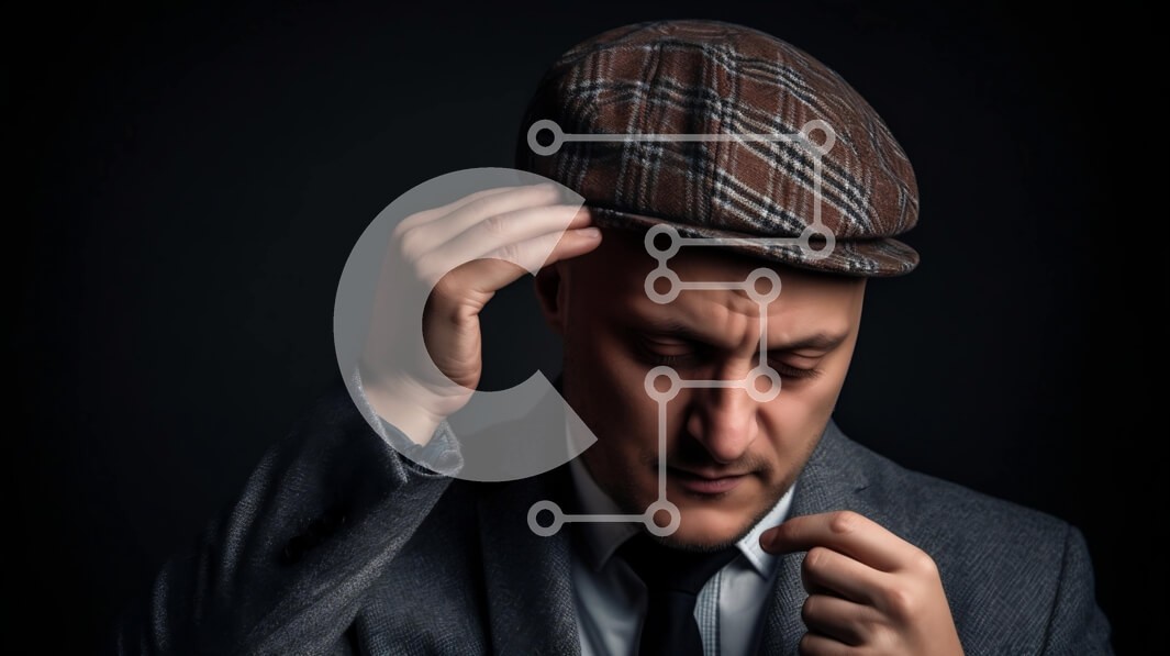 Υπάρχει δυνατότητα προσωποποίησης με δική σας φωτογραφία και προσαρμογής διαστάσεων κατόπιν παραγγελίας. Το συγεκεριμενο puzzle παρουσιαζει Αυτή η στοκ φωτογραφία απεικονίζει έναν άνδρα που φορά ένα καρό καπέλο και κοστούμι, κοιτάζοντας απευθείας την κάμερα με μια σοβαρή έκφραση. Η φωτογραφία είναι τραβηγμένη σε σκηνικό στούντιο με ουδέτερο φόντο, δίνοντας έμφαση στο ντύσιμο και την έκφραση του άνδρα. Ένα μοναδικ