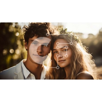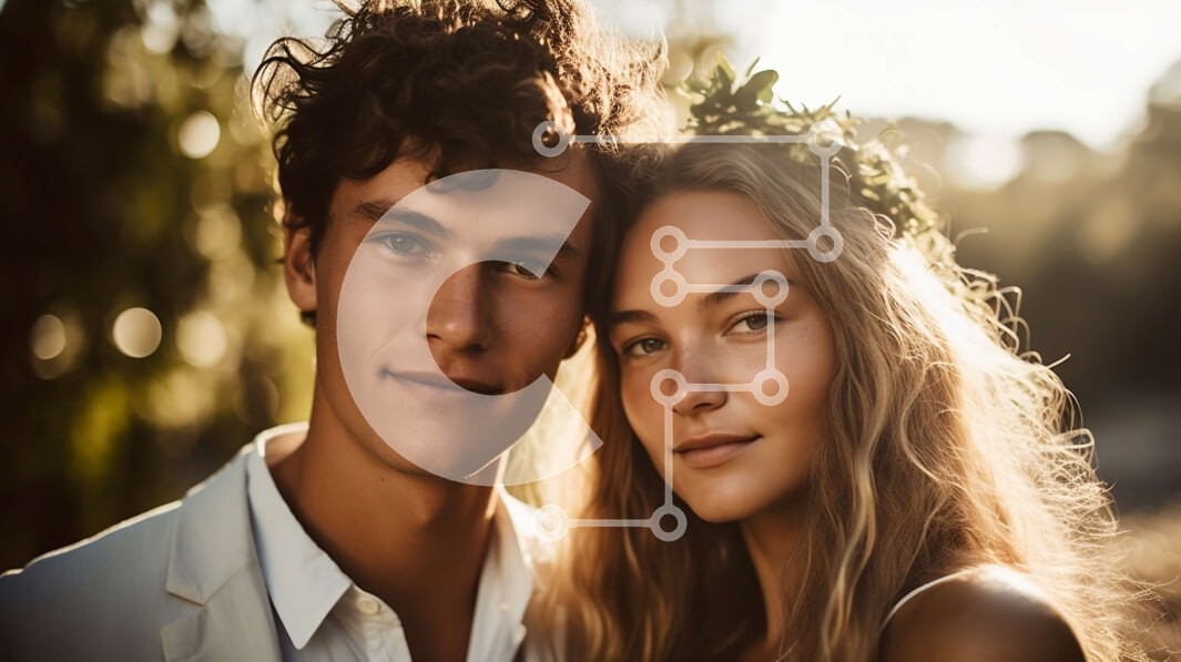 Υπάρχει δυνατότητα προσωποποίησης με δική σας φωτογραφία και προσαρμογής διαστάσεων κατόπιν παραγγελίας. Το συγεκεριμενο puzzle παρουσιαζει Αυτή η εικόνα παρουσιάζει ένα νεαρό ζευγάρι που στέκεται σε ένα χωράφι, φορώντας κορώνες λουλουδιών και χαμογελώντας ο ένας στον άλλο. Ο άνδρας φοράει λευκό πουκάμισο ενώ η γυναίκα λευκό φόρεμα. Ο ήλιος δύει στο βάθος, ρίχνει μια ζεστή λάμψη στη σκηνή και δημιουργεί μια ρομαντ