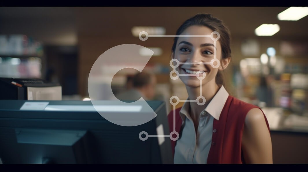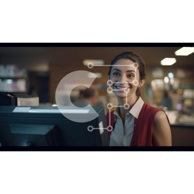 Υπάρχει δυνατότητα προσωποποίησης με δική σας φωτογραφία και προσαρμογής διαστάσεων κατόπιν παραγγελίας. Το συγεκεριμενο puzzle παρουσιαζει Αυτή η εικόνα παρουσιάζει μια χαμογελαστή γυναίκα να στέκεται πίσω από μια οθόνη υπολογιστή σε ένα περιβάλλον λιανικής. Εμφανίζεται φιλική και προσιτή, φορώντας ένα κόκκινο γιλέκο πάνω από μια ανοιχτόχρωμη μπλούζα. Το φόντο υποδηλώνει ένα σκηνικό καταστήματος με ράφια γεμάτα π