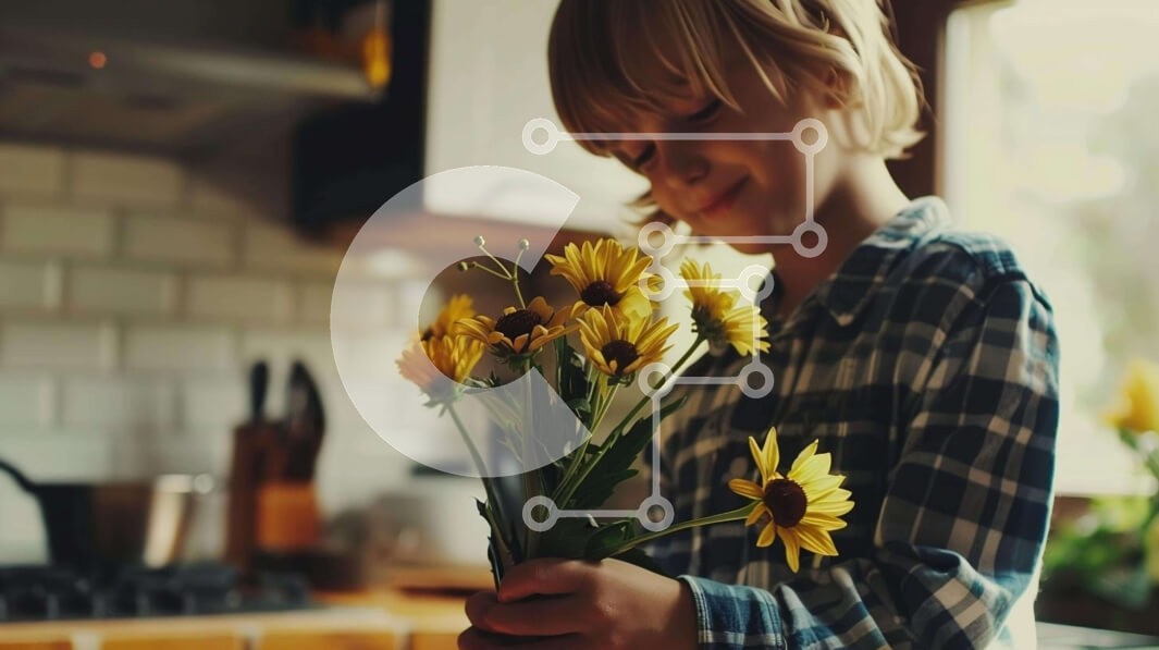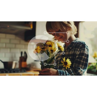 Υπάρχει δυνατότητα προσωποποίησης με δική σας φωτογραφία και προσαρμογής διαστάσεων κατόπιν παραγγελίας. Το συγεκεριμενο puzzle παρουσιαζει Η εικόνα δείχνει ένα νεαρό αγόρι που κρατά ένα μάτσο κίτρινα λουλούδια σε μια κουζίνα, περιτριγυρισμένο από μαγειρικά σκεύη και μαγειρικά σκεύη. Ένα μοναδικό puzzle που συνδυάζει ποιότητα, αισθητική και εμπειρία. Υλικό: Κατασκευασμένο από ανθεκτικό και φυσικό ξύλο, που προσφ