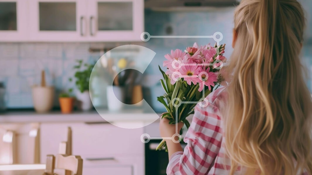 Υπάρχει δυνατότητα προσωποποίησης με δική σας φωτογραφία και προσαρμογής διαστάσεων κατόπιν παραγγελίας. Το συγεκεριμενο puzzle παρουσιαζει Η φωτογραφία δείχνει μια γυναίκα να κρατά ένα μπουκέτο με ροζ λουλούδια σε μια κουζίνα. Υπάρχουν κατσαρόλες και τηγάνια στον πάγκο, που υποδηλώνουν προετοιμασία φαγητού ή διασκεδάζοντας τους επισκέπτες. Ένα μοναδικό puzzle που συνδυάζει ποιότητα, αισθητική και εμπειρία. Υλικ
