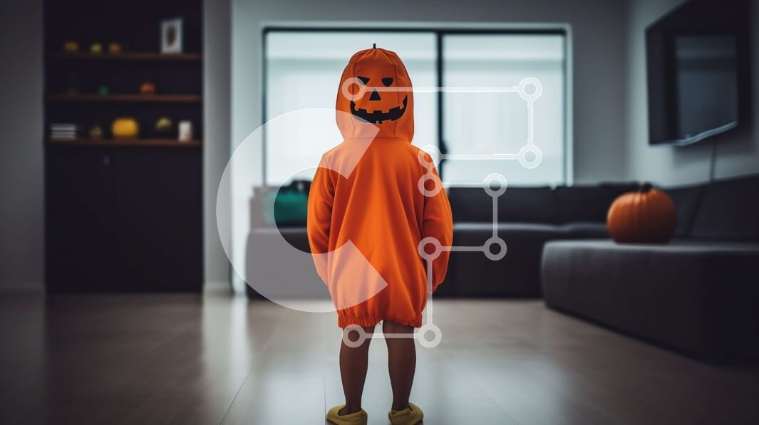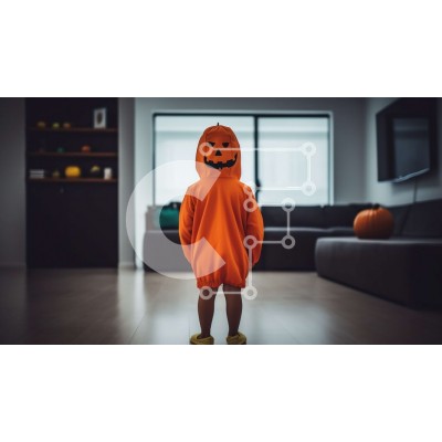 Υπάρχει δυνατότητα προσωποποίησης με δική σας φωτογραφία και προσαρμογής διαστάσεων κατόπιν παραγγελίας. Το συγεκεριμενο puzzle παρουσιαζει Αυτή η εικόνα παρουσιάζει ένα παιδί ντυμένο με μια πορτοκαλί στολή κολοκύθας να στέκεται σε ένα σαλόνι. Η πλάτη του παιδιού είναι στραμμένη προς την κάμερα, υποδεικνύοντας ότι είναι εστιασμένο σε κάτι πίσω του. Το δωμάτιο είναι γεμάτο με μαξιλάρια και διάφορα αντικείμενα, υποδ