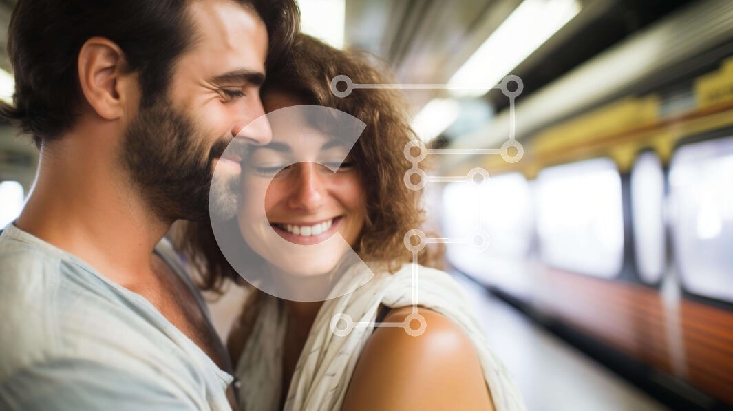 Υπάρχει δυνατότητα προσωποποίησης με δική σας φωτογραφία και προσαρμογής διαστάσεων κατόπιν παραγγελίας. Το συγεκεριμενο puzzle παρουσιαζει Αυτή η εικόνα απεικονίζει ένα ζευγάρι αγκαλιά σε έναν σταθμό του μετρό. Ο άντρας και η γυναίκα αγκαλιάζονται με στοργή, στέκονται δίπλα σε ένα τρένο. Το φόντο είναι σκόπιμα θολό για να επικεντρωθεί στο ζευγάρι. Μεταφέρει μια αίσθηση ρομαντισμού και προσμονής καθώς περιμένουν τ