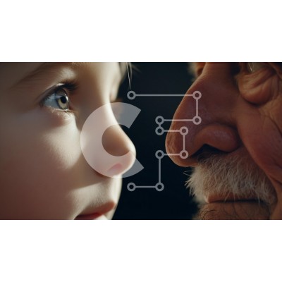Υπάρχει δυνατότητα προσωποποίησης με δική σας φωτογραφία και προσαρμογής διαστάσεων κατόπιν παραγγελίας. Το συγεκεριμενο puzzle παρουσιαζει Η εικόνα καταγράφει μια κοντινή αλληλεπίδραση μεταξύ ενός παιδιού και ενός ηλικιωμένου άνδρα, εστιάζοντας στα πρόσωπά τους. Το μεγάλο, εκφραστικό μάτι του παιδιού έρχεται σε αντίθεση με τα χαρακτηριστικά της υφής του προσώπου του μεγαλύτερου άνδρα. Το απαλό φως ενισχύει τα συν