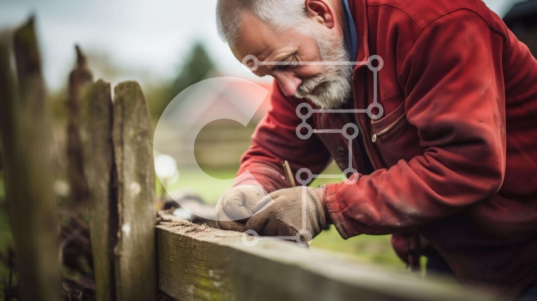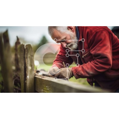 Υπάρχει δυνατότητα προσωποποίησης με δική σας φωτογραφία και προσαρμογής διαστάσεων κατόπιν παραγγελίας. Το συγεκεριμενο puzzle παρουσιαζει Αυτή η εικόνα παρουσιάζει έναν ηλικιωμένο άνδρα που εργάζεται σε έναν ξύλινο φράχτη στην ύπαιθρο. Μπορεί να τον δει κανείς να χρησιμοποιεί πένσα για να φτιάξει τον φράχτη, υποδεικνύοντας τη συμμετοχή του σε δραστηριότητες επισκευής ή συντήρησης. Υποδηλώνει επίσης την ενασχόλησ